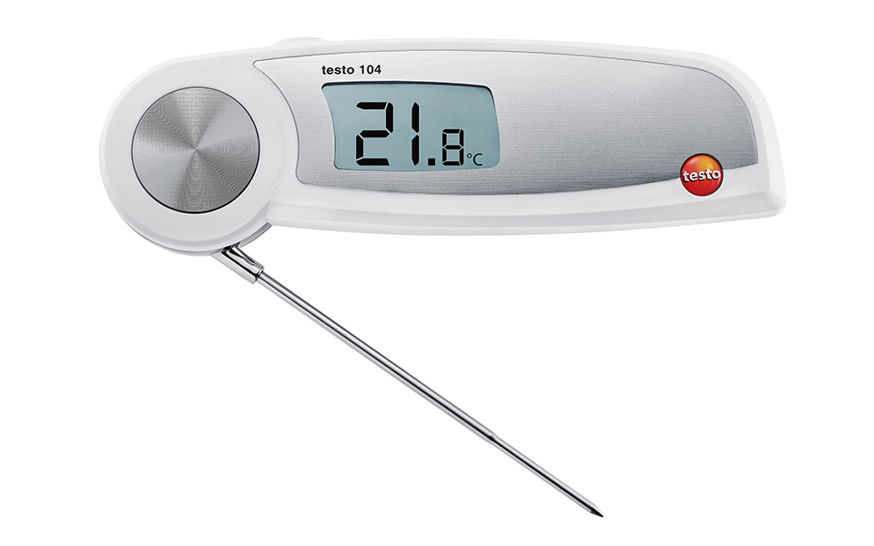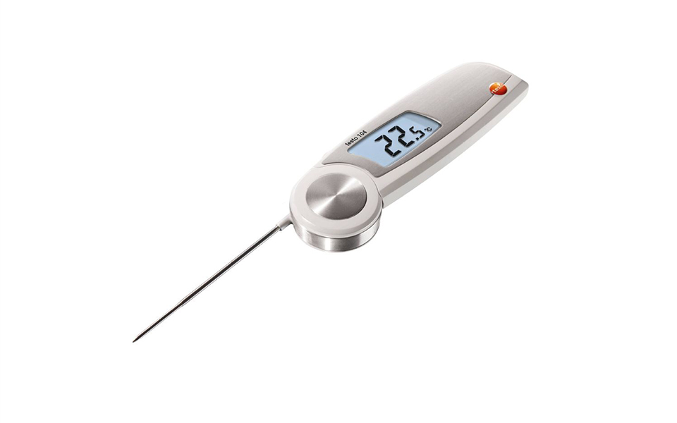 testo 104在測量完成后可水下沖洗的折疊式食品中心溫度計。折疊式探頭在完成測量后折疊收納入儀器外殼。