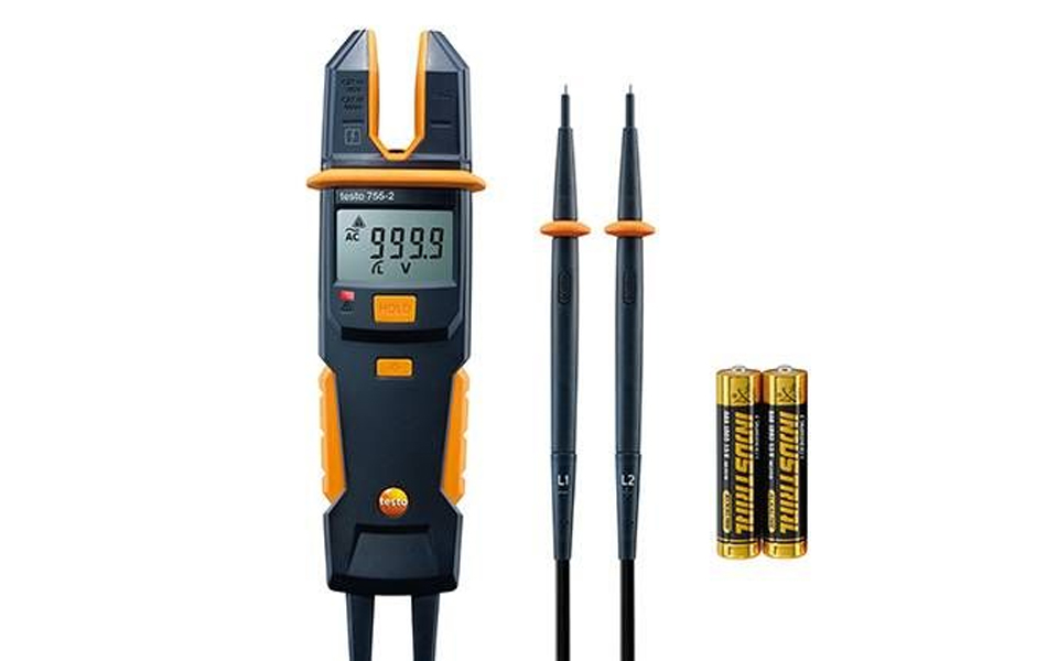 電流/電壓測試儀 testo 755-2,包括電池、探頭、探頭套、校準記錄和操作說明。