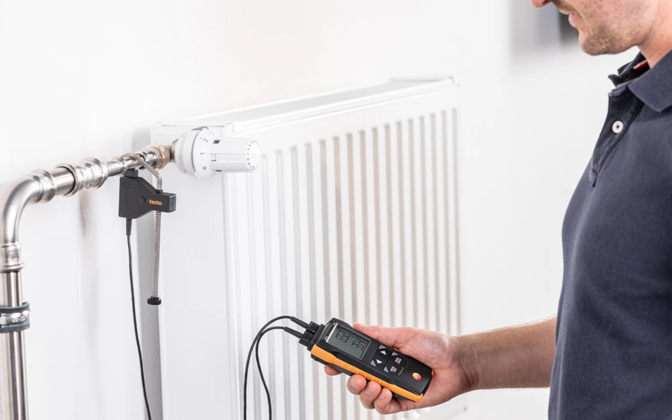 使用雙通道溫度測(cè)量?jī)xtesto 922(隨機(jī)標(biāo)含2個(gè)K型熱電偶),可以簡(jiǎn)單快速和精確地獲得溫差值。即刻掌控供暖回路上的供水/回水溫度。
